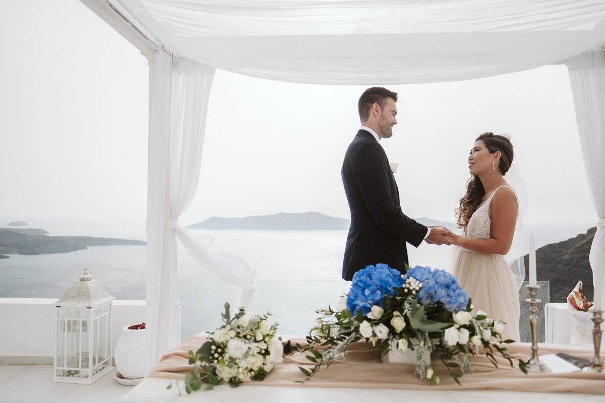 Dana villas wedding venue is ideal for a symbolic or civil wedding. We would like to thank Michele and Chad for trusting Marryme in Greece for their elopement ceremony. The wedding ceremony took place in Santorini at Dana villas.